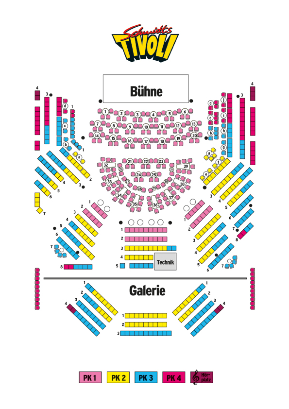 Hinweis: der Saalplan dient lediglich zur Orientierung. Unsere Mitarbeiter sind Ihnen gerne bei der genauen Platzwahl und Preisgruppe behilflich.